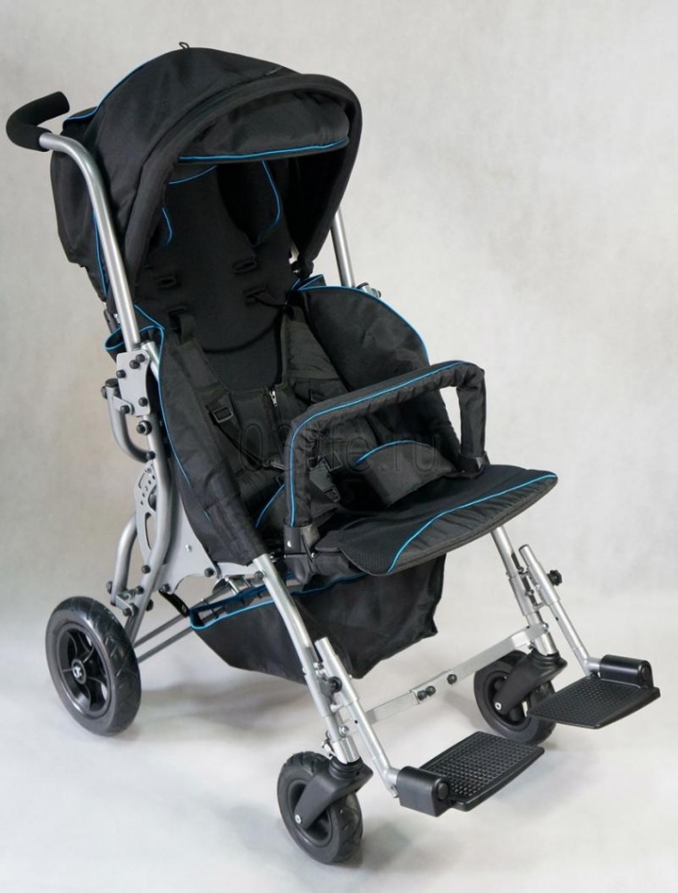 Кресло-коляска предназначена для передвижения детей с ДЦП, с помощью сопровождающего лица. Кресло-коляска имеет складную конструкцию. Рама кресла-коляски выполнена из стальных трубок повышенной прочности.