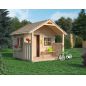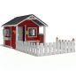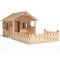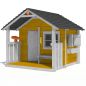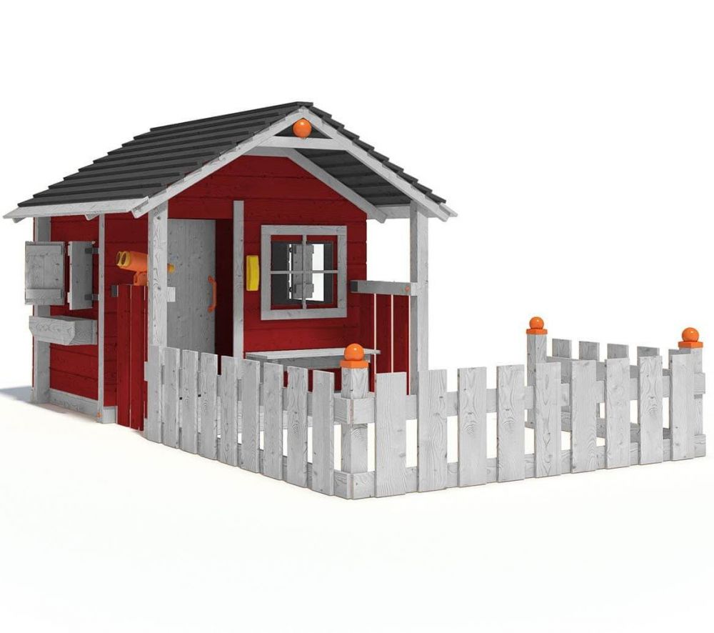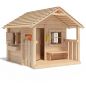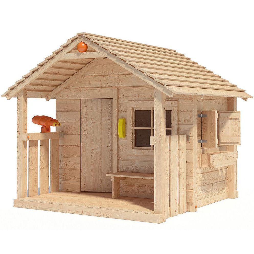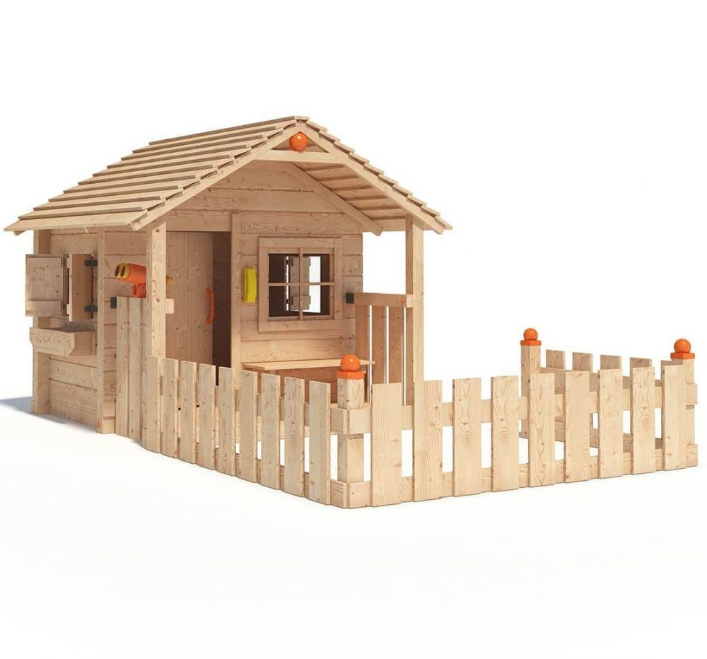 Большой и высокий игровой домик создаст во дворе для Ваших детей своё укромное и безопасное место для игр. Стены домика сделаны из имитации бруса толщина 16 мм. В конструкции используются брусья из натурального массива дерева хвойных пород. Все столбы отшлифованы, углы закруглены. Толщина столбов - 90x90 мм. Крыша сделана из широких досок.