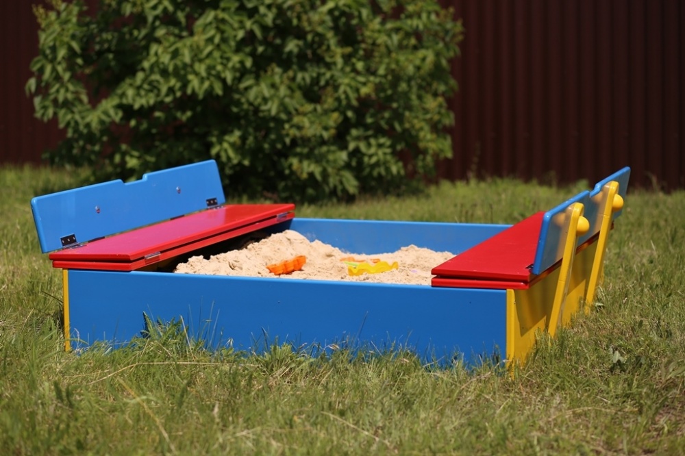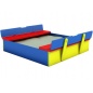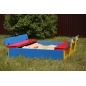 Яркая детская песочница "Тунис" - это настоящий трансформер, ее защитная крышка при открытие превращается в удобные скамейки. А когда развлечения подойдут к концу, крышку легко можно закрыть и никакой мусор не попадет внутрь песочницы.