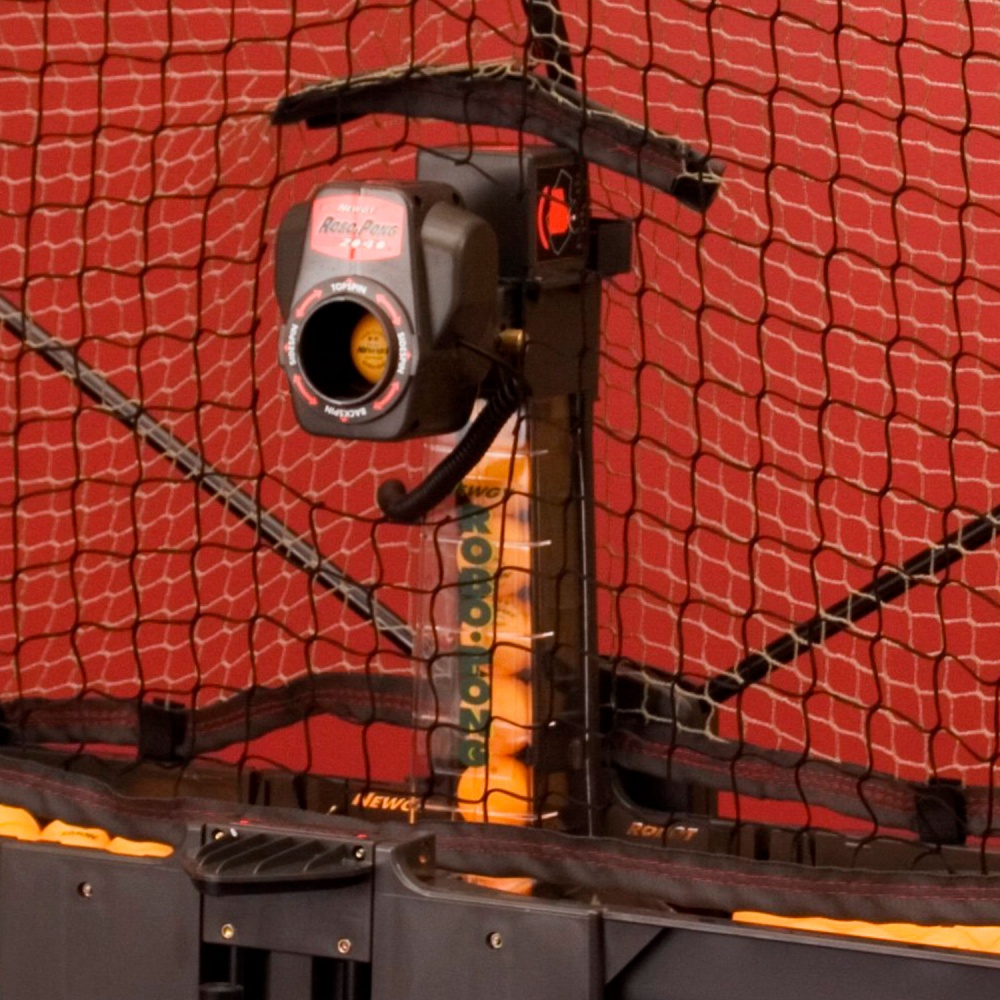 Его скорострельность - от 26 до 94 мячей в минуту. Вы можете выставить любое вращение, необходимое для вашей тренировки. Скорость выброса мяча - от 16 до 121 км/ч, что дает возможность тренироваться не только начинающим, но и профессионалам, а наличие пульта дистанционного управления позволит быстро перестроить характеристики выброса мяча. Robo-Pong 1040 оснащен регулировкой радиуса выброса мячей. Для сбора мячей в комплекте идет сетка для улавливания.