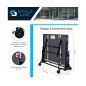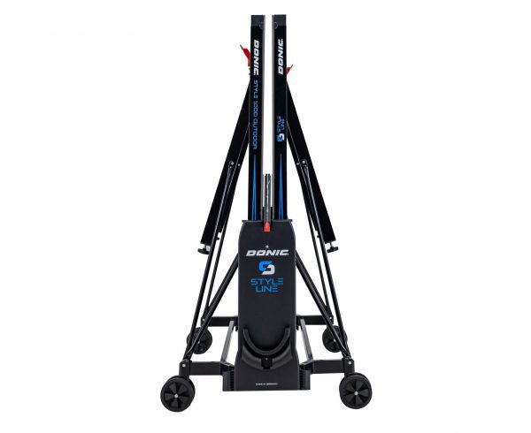 Для удобного хранения ракеток и мячей предусмотрен специальный держатель, который входит в комплект поставки. Стол оснащен четырьмя прорезиненными двойными роликами с плавным ходом диаметром 128 мм, которые обеспечивают легкое перемещение стола.