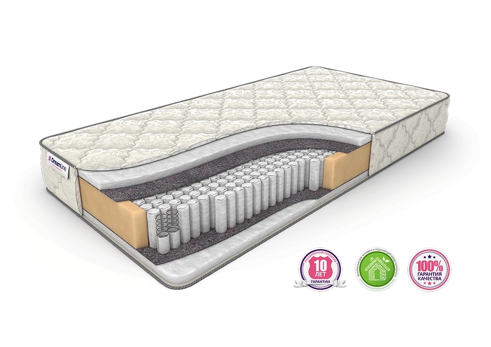 Данную модель отличают высокое качество по разумной цене. Вам не придётся переплачивать за особые свойства пружинного механизма S1000, которым, как правило укомплектованы модели класса De Luxe, благодаря относительно низкой стоимости холлофайбера (жёсткой ваты) - современного заменителя эластичной пены. Кроме низкой стоимости, к достоинствам холлофайбера следует отнести его жёсткость и прочность, придающие надёжность всей конструкции в целом. Сверхпрочная прокладка из льноджутового полотна в совокупности с высококачественным чехлом Elite обеспечивают повышенную продолжительность срока службы матраса при условии, что масса его хозяина ненамного превышает 130 кг.