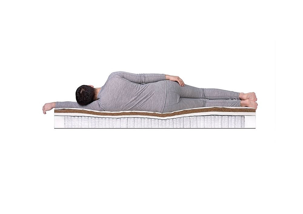 С обеих сторон в разном порядке уложены слои из натурального латекса и кокосового волокна. Натуральный латекс, полученный путем вспенивания растительного сока гевеи, обладает отличными параметрами эластичности и долговечности. Он очень стойкий к износу и способен выдерживать большую концентрацию нагрузок.