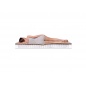 Смонтированные на независимом пружинном механизме TFK данный матрас прекрасно защищен от нежелательных колебаний. При этом его поверхности обладают различными свойствами. Сторона А – обладая высоким уровнем жёсткости, наполнитель из кокосовой койры обеспечивает комфортное расположение тела в горизонтальной плоскости и служит надёжной опорой для позвоночника. Сторона Б – благодаря наполнителю из натурального латекса обладает высокой анатомичностью, то есть свойством принимать форму тела, лежащего на матрасе, что способствует быстрому снятию мышечного напряжения и гарантирует глубокий здоровый сон. Прослойка из натурального льноджутового волокна защищает наполнители от преждевременного разрушения из-за трения о пружины.