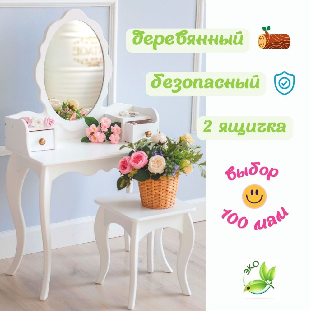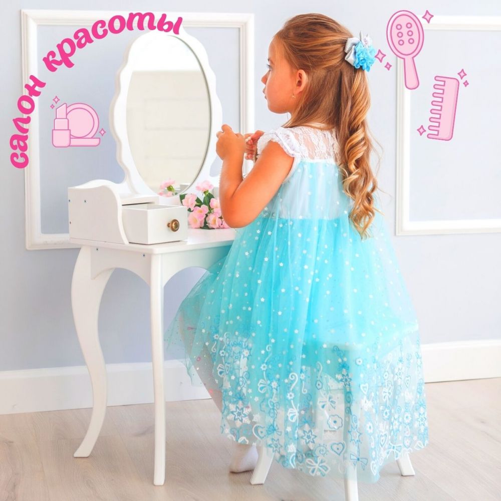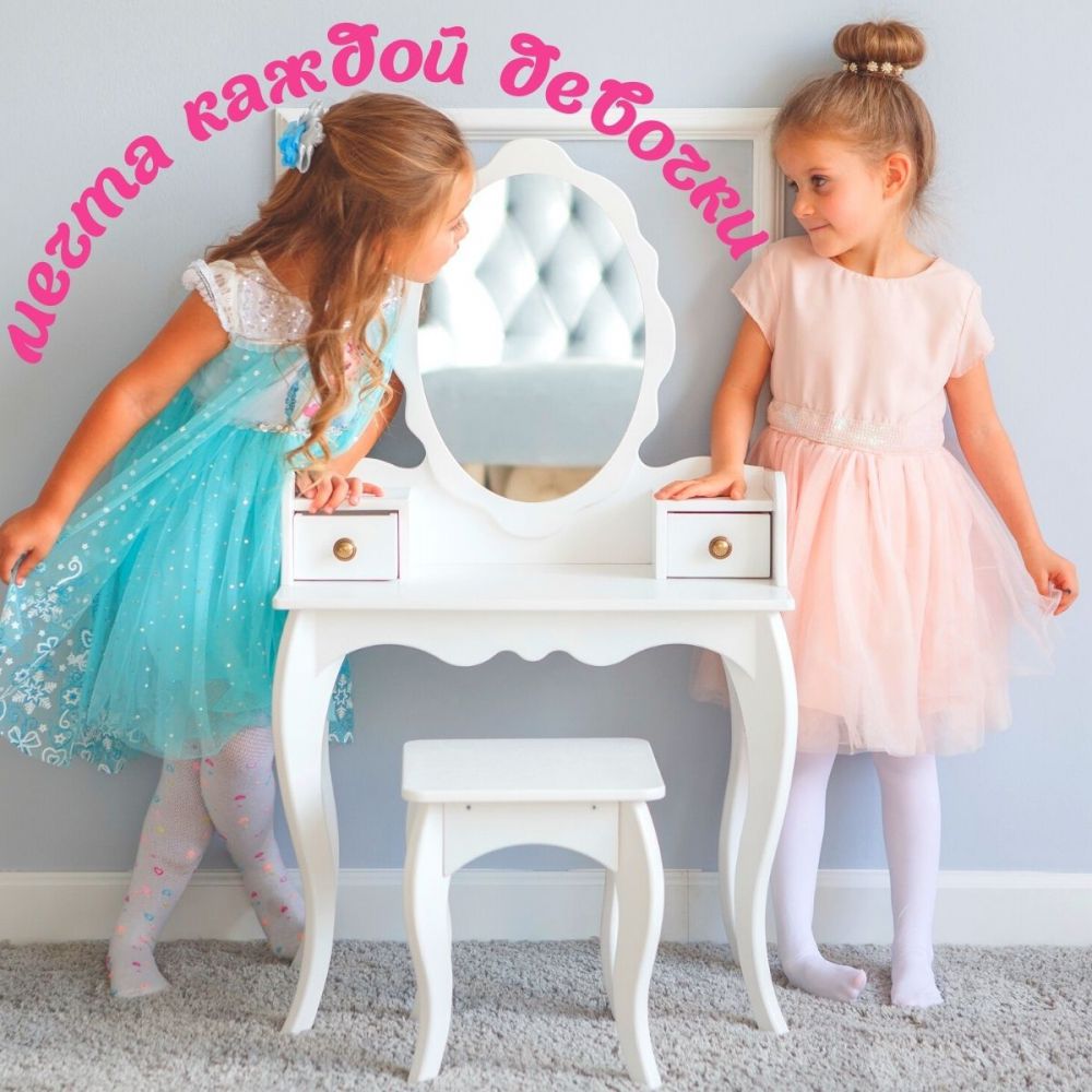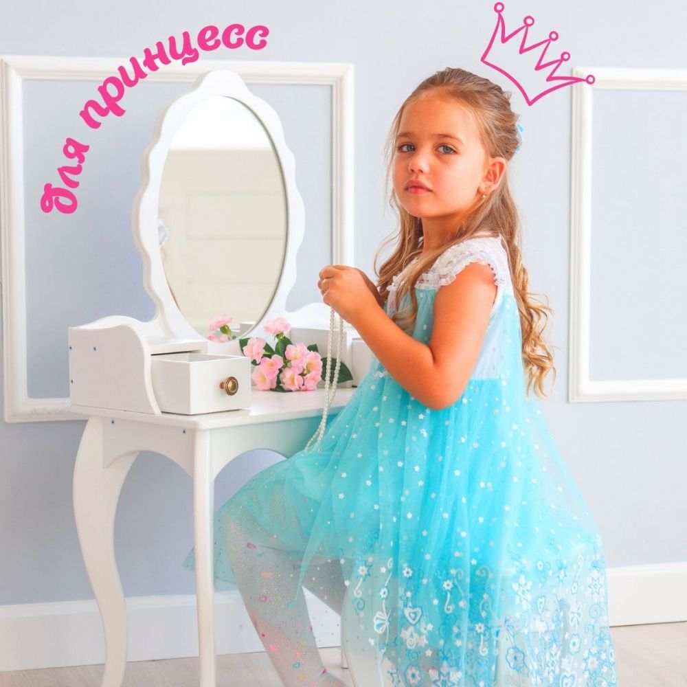 Ваша маленькая принцесса будет в восторге от собственного туалетного столика, ведь он такой же, как мамин, но отлично подходит по размеру для девочек от 3 лет.