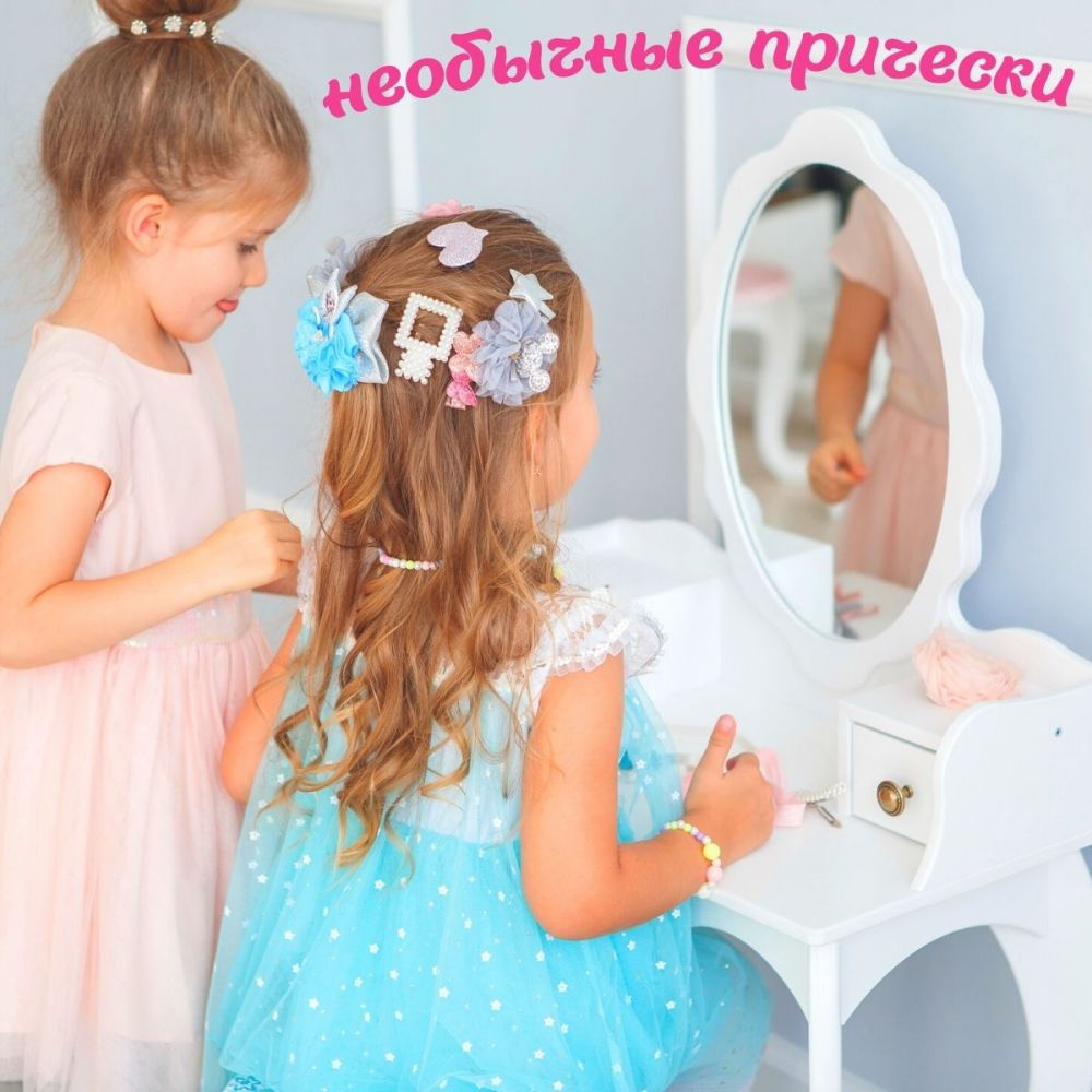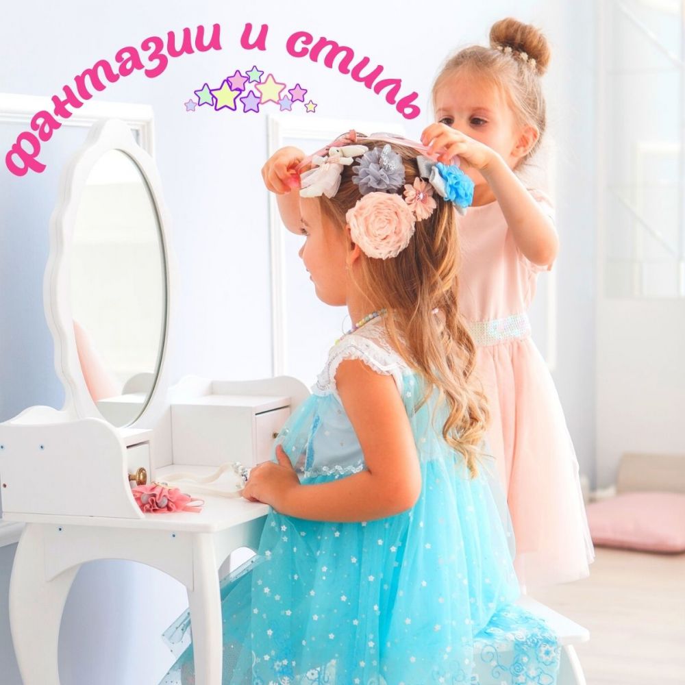 Резиночки и аксессуары для волос больше не будут теряться, ведь их можно хранить в удобных ящиках столика, а на вместительных полочках получится разместить сувениры и фигурки любимых персонажей.