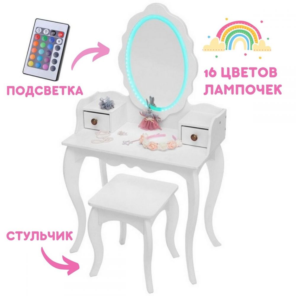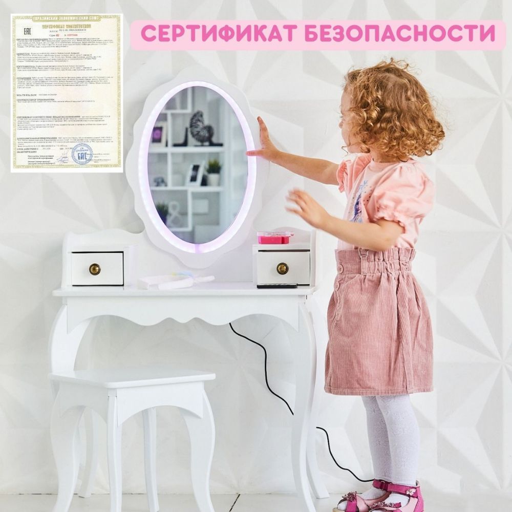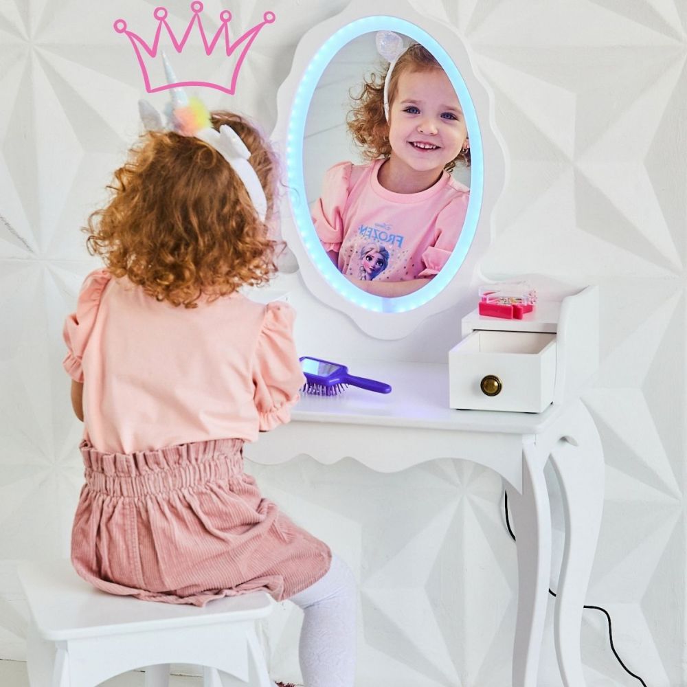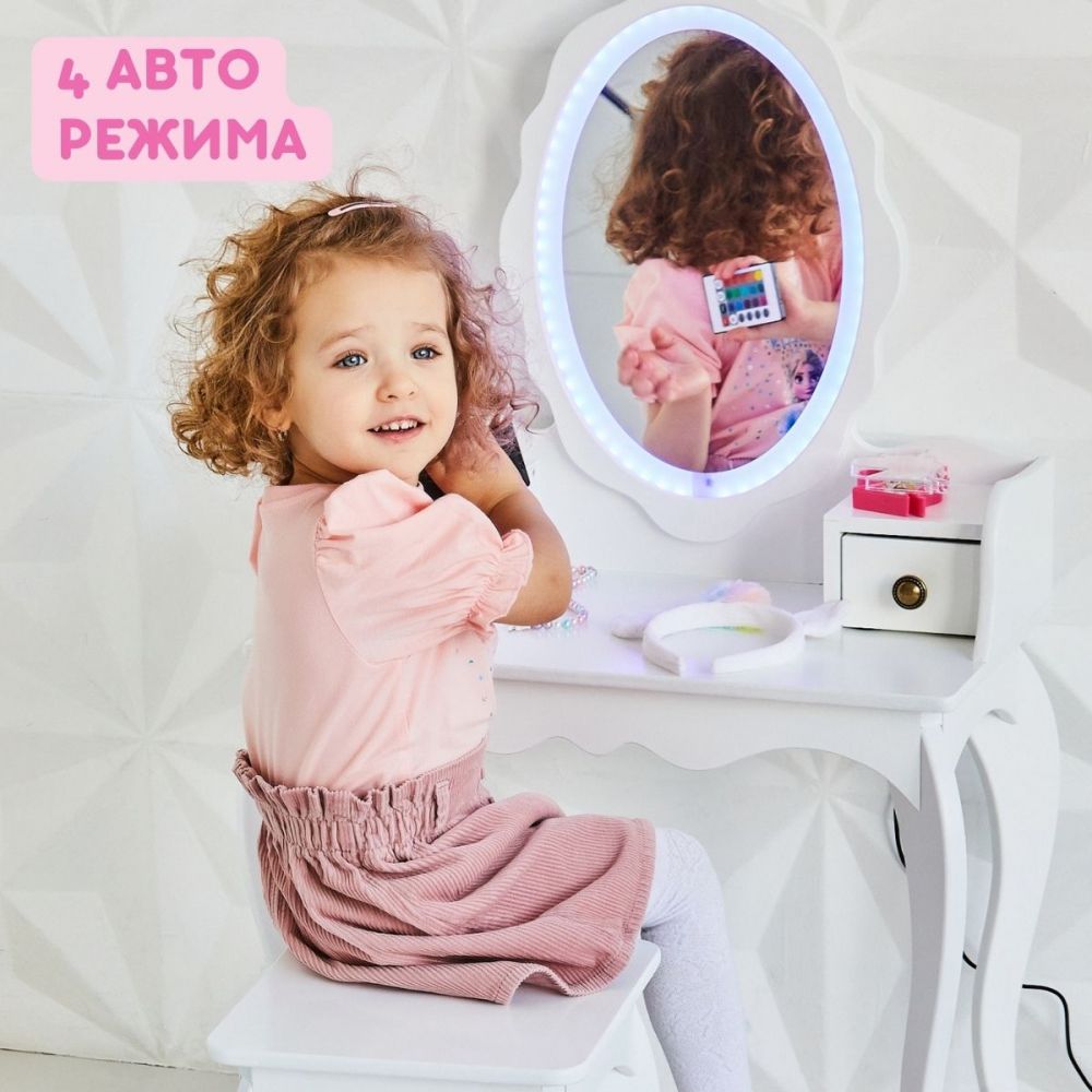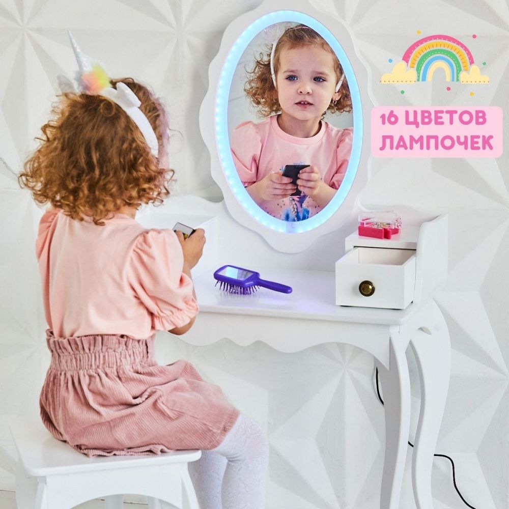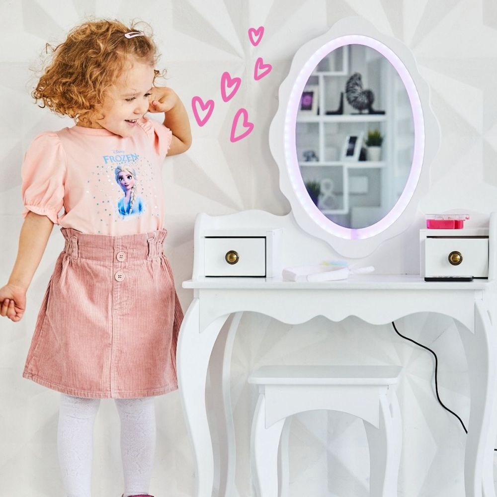Изящный туалетный столик Принцесса «Эльза» - прекрасное сочетание классической надежной детской мебели и оригинального решения по подсветке зеркала.