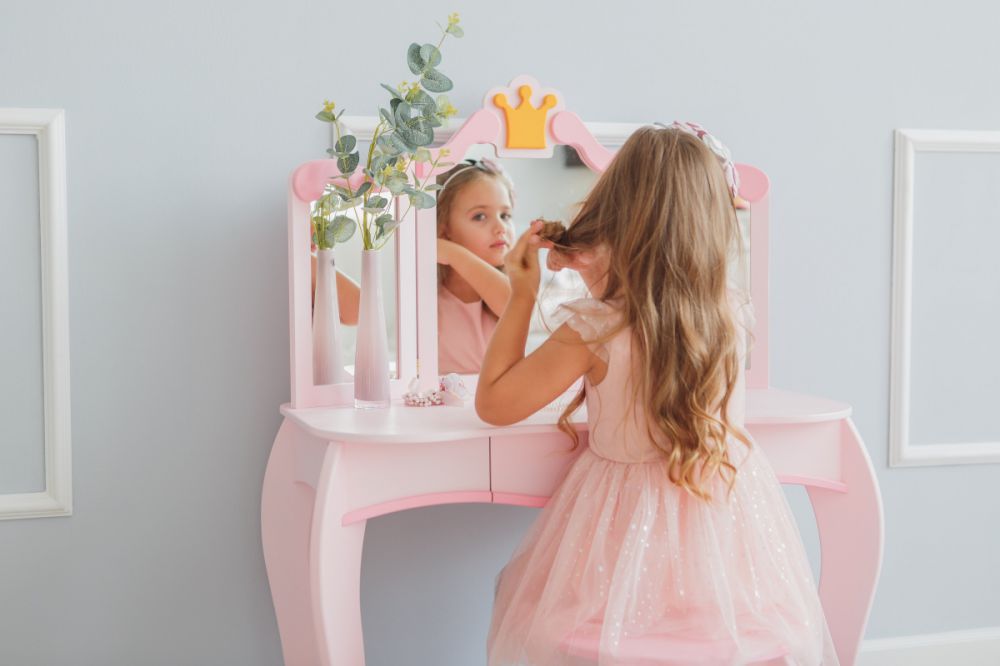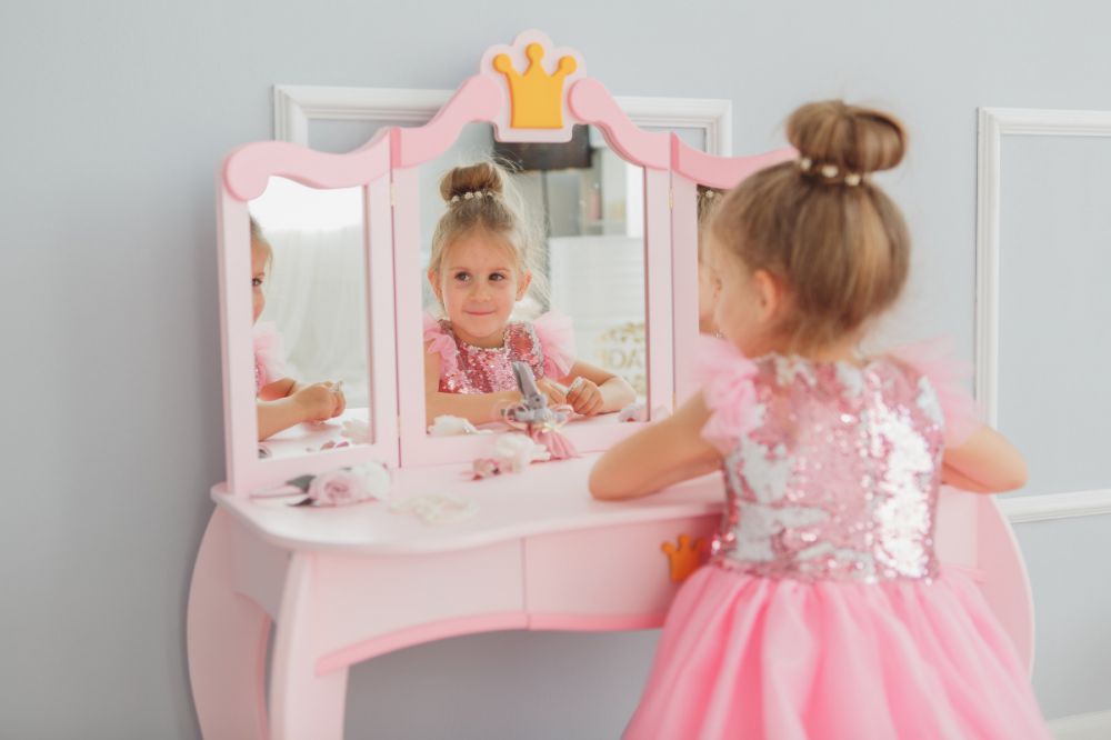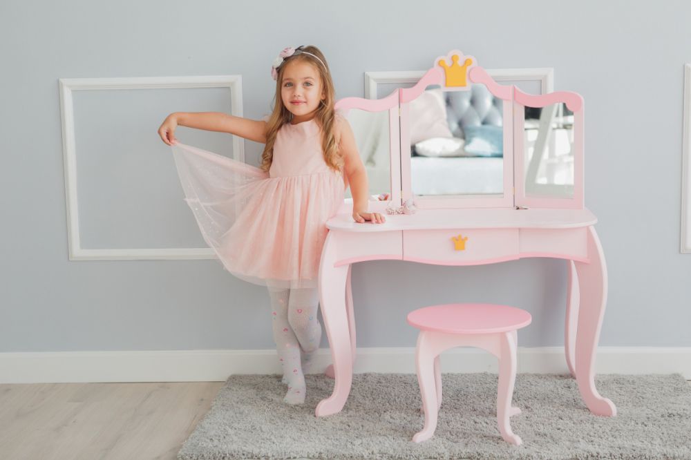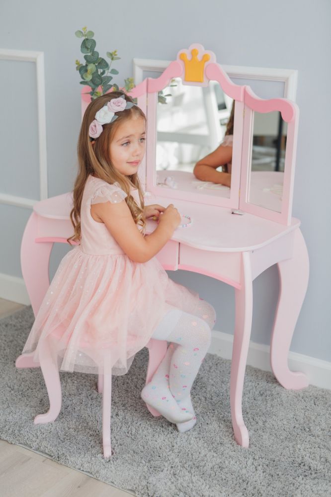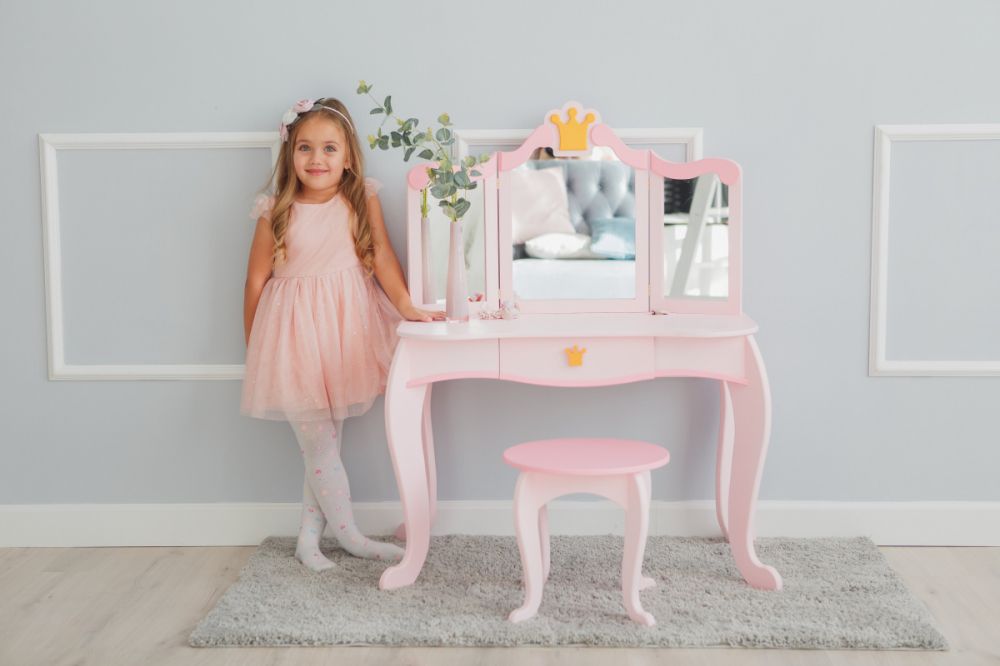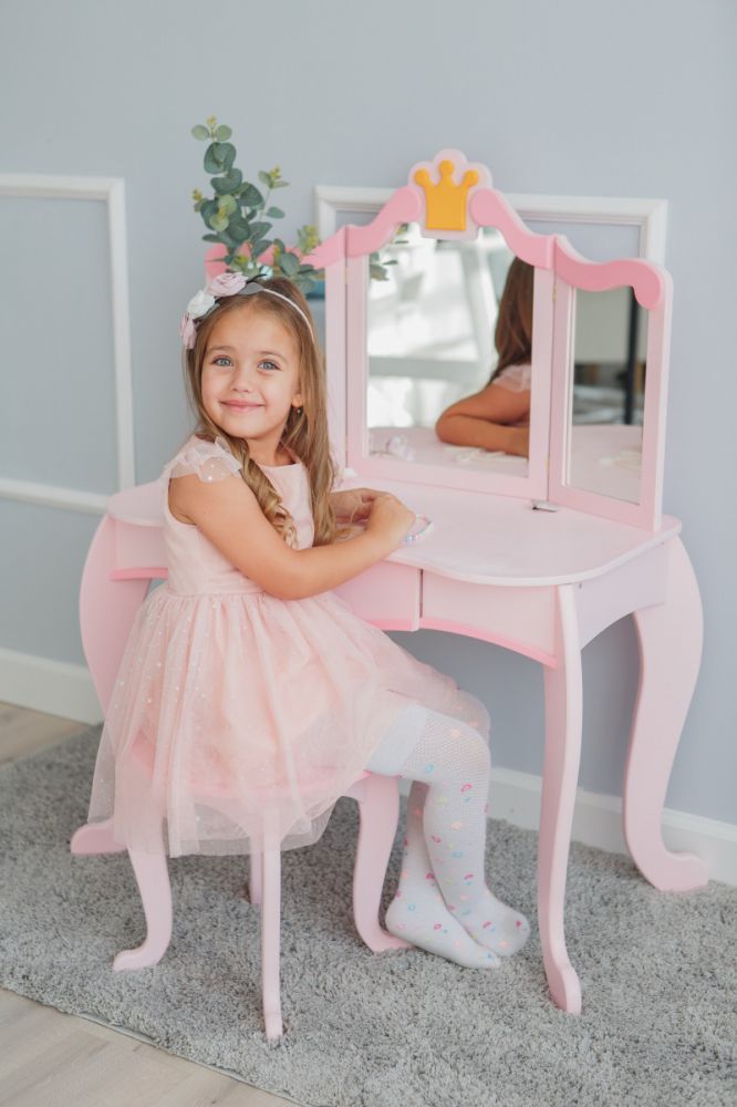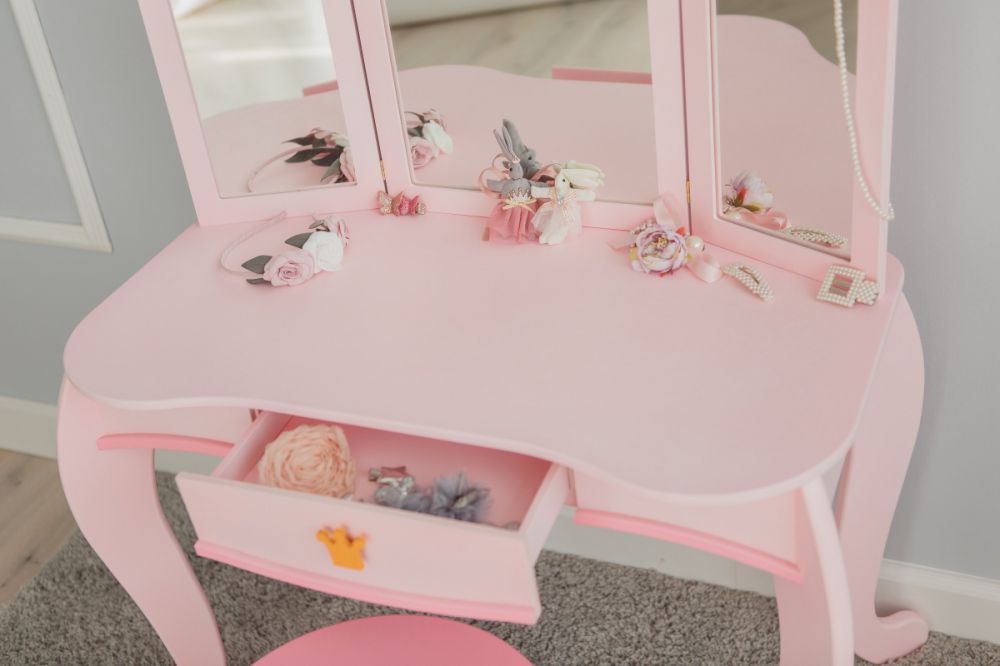 На гладкой поверхности столика поместятся все украшения маленькой модницы, а самое любимое и ценное можно спрятать в выдвижной ящичек.
