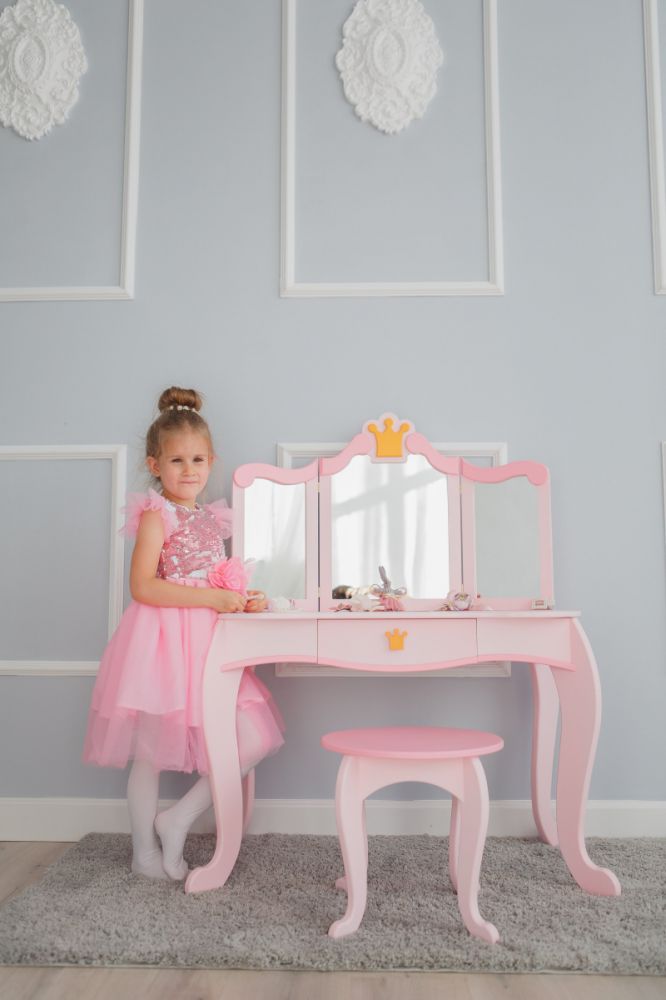 Мечта любой девочки-туалетный столик “Рапунцель” с резными коронами. За ним можно прихорашиваться, болтать с подружками или просто мечтать.