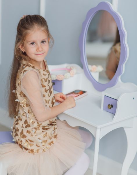 Туалетный столик Принцесса «София» выполнен в бело-фиолетовом цвете из МДФ.