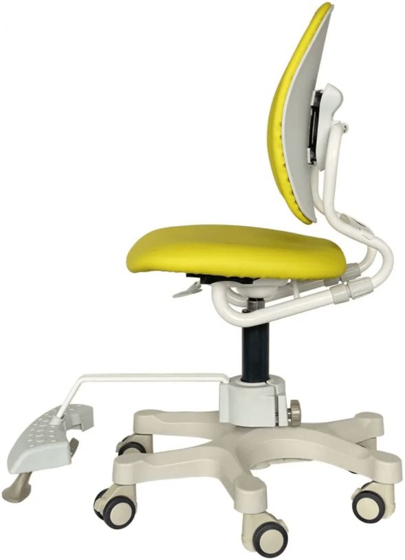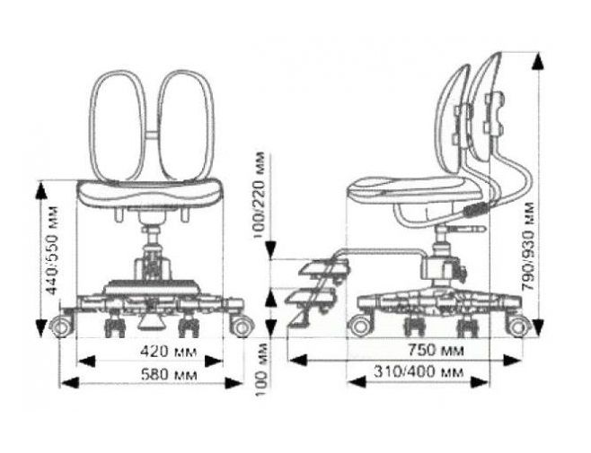 Кресло оснащено регулируемой подножкой, благодаря ей ноги сидящего образовывают в коленях прямой угол 90 градусов, который и является правильным при сидение в кресле. Шестилучевая крестовина повышенной устойчивости защищает кресло от опрокидывания, мягкие уретановые колесики бесшумно скользят по любому напольному покрытию, не оставляя следов, и имеют возможность блокировки движения колес. Газ-патрон оснащен возвратным механизмом – специальной пружиной, возвращающий сидящего в ровное положение относительно стола.