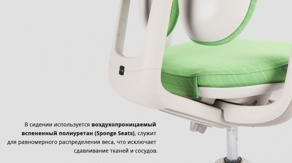 Сетка сиденья хорошо пропускает воздух, позволяю телу дышать, исключая потение, сдавливание тканей и кровеносных сосудов, давая возможность крови свободно циркулировать.