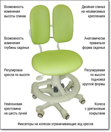 Модель кресла DR-218A(L) позволит ребенку даже не прибегать к механическому рычагу, а регулировать высоту своего кресла собственным весом. Спинка кресла имеет разделение, благодаря чему получаются две подвижные подушки с гибким каучуковым креплением. Это позволяет снизить гиперактивность ребенка, увеличить его работоспособность и способствует концентрации внимания.