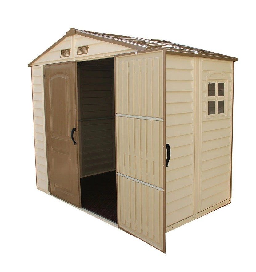 Виниловый хозяйственный сарай - является замечательным решением для семьи, которой не хватает еще чуть-чуть места, чтобы хранить свои вещи. Эта мобильная постройка очень компактна и легко влезет на любой участок в какой-нибудь укромный уголок. Данный тип хозблока имеет основание для создания пола. Покупатель имеет возможность установить тип пола в зависимости от будущего назначения постройки - резиновый, водостойкая фанера, половая доска или бетонирование.