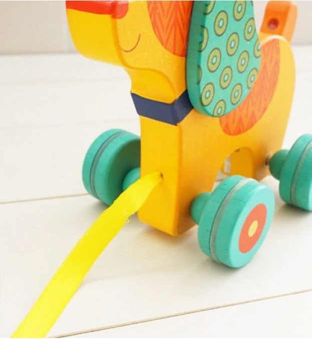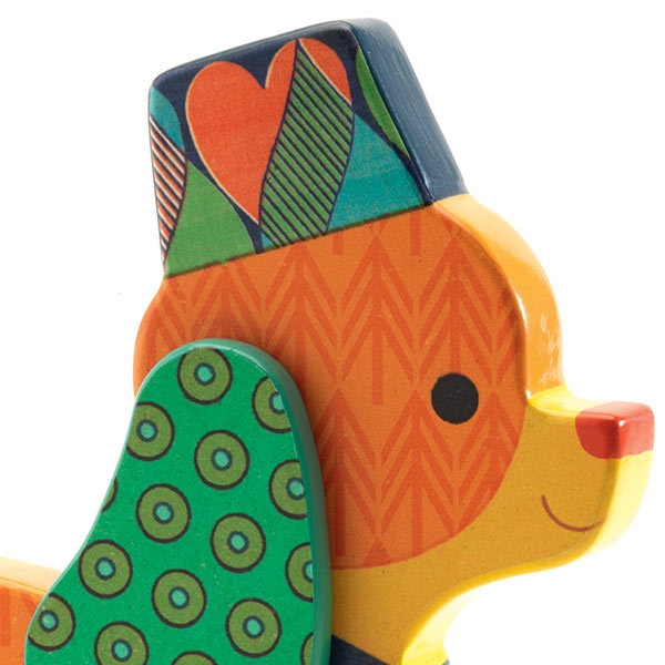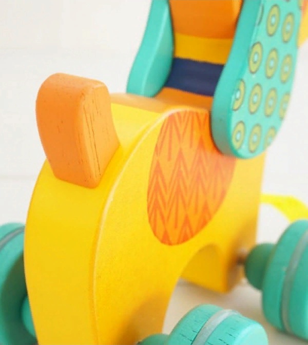 Деревянная каталка впечатлит ребенка и взрослого своим необычным и ярким дизайном. Песик станет лучшим компаньоном вовремя прогулок крохи. Катая ее за собой за ленточку, ребенок приобретет уверенность в движениях, укрепит мышцы ног и потренирует координацию движений.