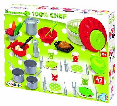 Набор посуды Chef - отличный подарок девочке старше 18 месяцев. В этом большом комплекте кроха найдет огромную массу посуды для организации обеда или ужина для любимых куколок.