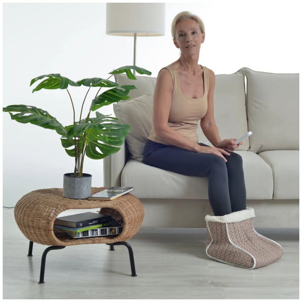 Электрогрелка-сапожок VALENOK c 3 режимами нагрева до 55 градусов и функцией автоотключения через 1 час использования согреет ваши ноги инфракрасным теплом. Нагревательный элемент - карбоновое волокно. Изделие оснащено удобным пультом управления, который можно отсоединить. Внутренний хлопковый чехол можно стирать. Грелка для ног идеально подойдет людям, у которых мерзнут ноги, а также для дома, дачи или офиса в холодное время года.
