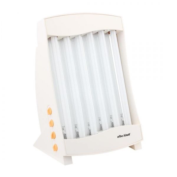 Мини-солярии Efbe-Schott 836 – отличный небольшой солярий, который поможет загореть вашему лицу, получить отличный цвет, ровную гладкую кожу. Солярий имеет таймер на 30 минут и предполагает наличие автоматического отключения, имеет две пары защитных очков, с помощью которых вы сможете защитить при загаре ваши глаза. Данный мини-солярий удобен для использования в домашних условиях, ведь он компактный и удобный в использовании без посторонней помощи. Всего, данный мини-солярий имеет 6 ламп ультрафиолетового излучения по 15 Ватт, а также обладает функцией памяти на 4 человека, которая будет хранить информацию о времени, потраченном на загар.