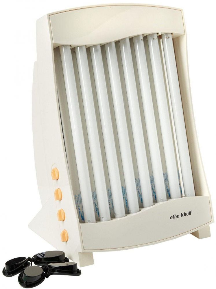 Мини-солярий для лица Efbe-Schott 838 – отличный прибор для загара лица, отличный вариант для того, чтобы вы могли получить ухоженную красивую кожу лица, ровного оттенка и приятной текстуры. Данный солярий имеет 8 ламп ультрафиолетового излучения по 15 Ватт. Вы можете использовать этот солярий легко и просто в домашних условиях, при этом вам не потребуется посторонняя помощь и какие-то особенные действия при изучении работы солярия. Имеет функцию памяти, рассчитанную на 4 человек