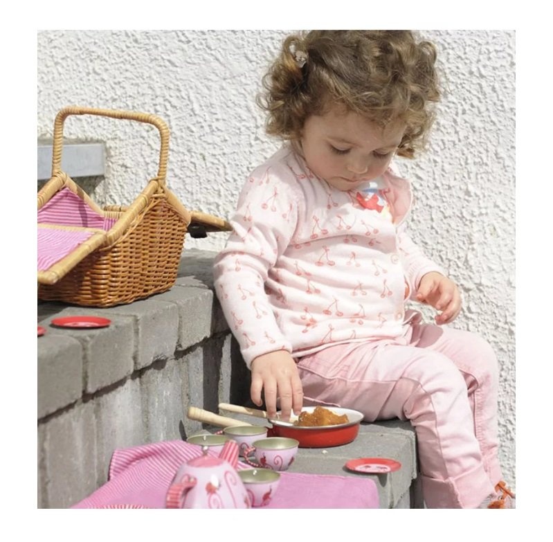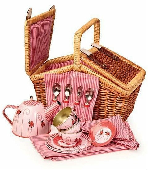 Набор игрушечной посуды "Божья коровка" - мечта девочки старше 3 лет. С такими игрушками маленькая мама сможет угостить всех подружек своей куклы вкусным и ароматным чаем. В комплект входит маленькая плетеная корзинка, три чашки с блюдцами, три тарелки, ложки и салфетки. Посуда украшена изображениями божьих коровок.