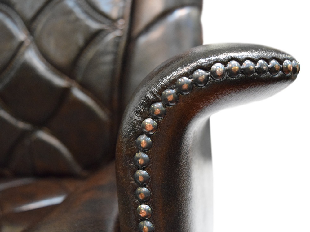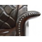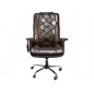 Сидение размещено на стальной, хромированной крестовине с прорезиненными колесами. Высота кресла регулируется механически, подъемным рычагом.