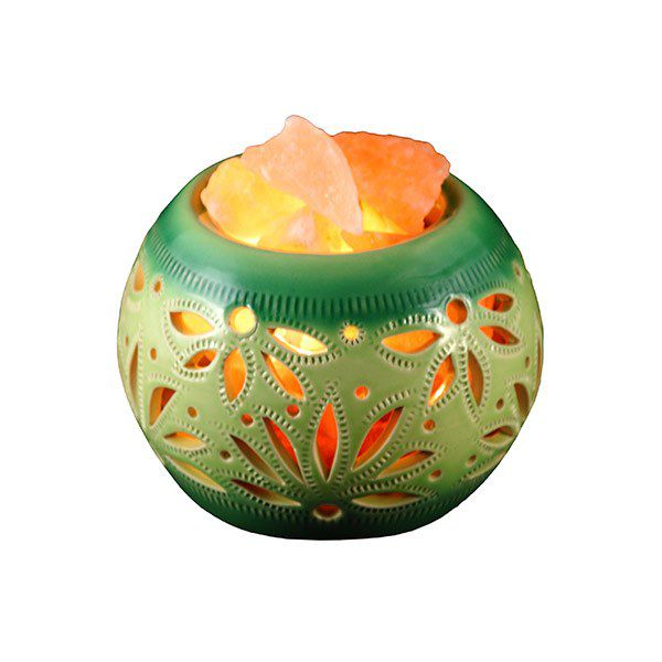 Солевая лампа «Лето» на керамическом основании выполнена в форме круглой вазы с прорезями в виде цветочков. Цвет вазы нежно-зеленый. Керамика сделана по исконно русским традициям гончарного ремесла из натуральной глины. Лампа полезна для больных астмой и бронхитом, для людей со слабым иммунитетом. Изделие отлично подойдет в качестве ночника. Кнопка включения лампы расположена на шнуре питания.