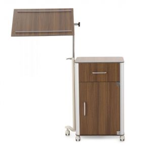 Также к недостаткам стоит отнести отсутствие замков на дверце и выдвижном ящике, которые помогли бы защитить личные вещи пациента от посторонних. Прикроватная тумба Rubens II служит местом хранения вещей, опорным приспособлением и средством проведения досуга пациента. Тумба комплектуется откидным столиком.