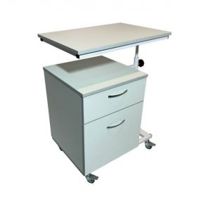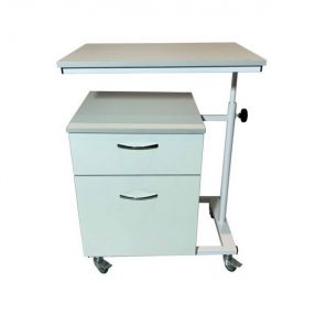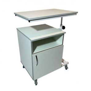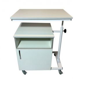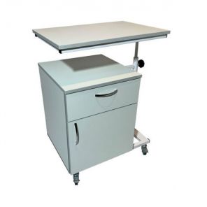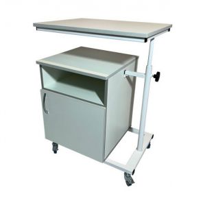 Прикроватная тумба предназначена для использования в медучреждениях и в домашних условиях. Модель укомплектована столешницей, которая находится на специальном кронштейне, которые позволяет регулировать ее положение по вертикали и горизонтали, а также менять угол наклона. Такая конструкция незаменима для лежачих больных или пациентов с нарушением опорно-двигательных функций, которые проходят реабилитацию. Для мобильности и маневренности есть четыре колеса, но они не имеют стопорных механизмов.