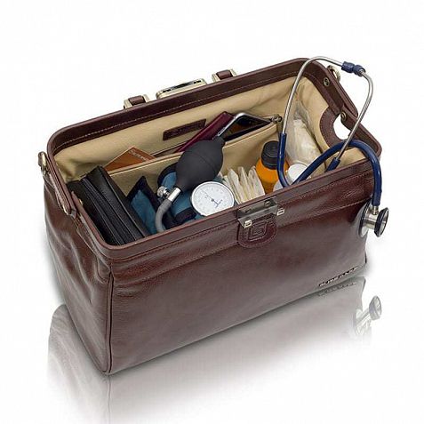 Традиционный саквояж врача, компактного размера из натуральной кожи коричневого цвета позволяет переносить медикаменты для частных визитов на дом. Элегантная сумка для настоящих профессионалов.