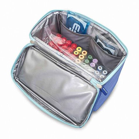 Изотермическая сумка большой емкости, позволяющая организованно и в оптимальных условиях транспортировать 300 диагностических образцов и 36 образцов мочи из экстракционного центра в лабораторию. Сумка сертифицирована в соответствии с № ООН 3373, что позволяет транспортировать биологические вещества класса В.