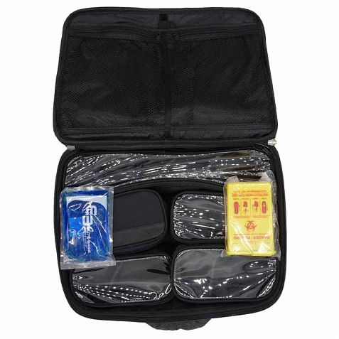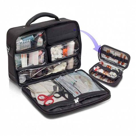 Большая сумка для оказания экстренной и неотложной помощи, сопровождения пациентов при транспортировке на дальние расстояния. Предоставляет множество возможностей по организации внутреннего пространства, позволяет врачу конфигурировать отсеки для хранения лекарств и приборов в зависимости от типа оказания помощи.