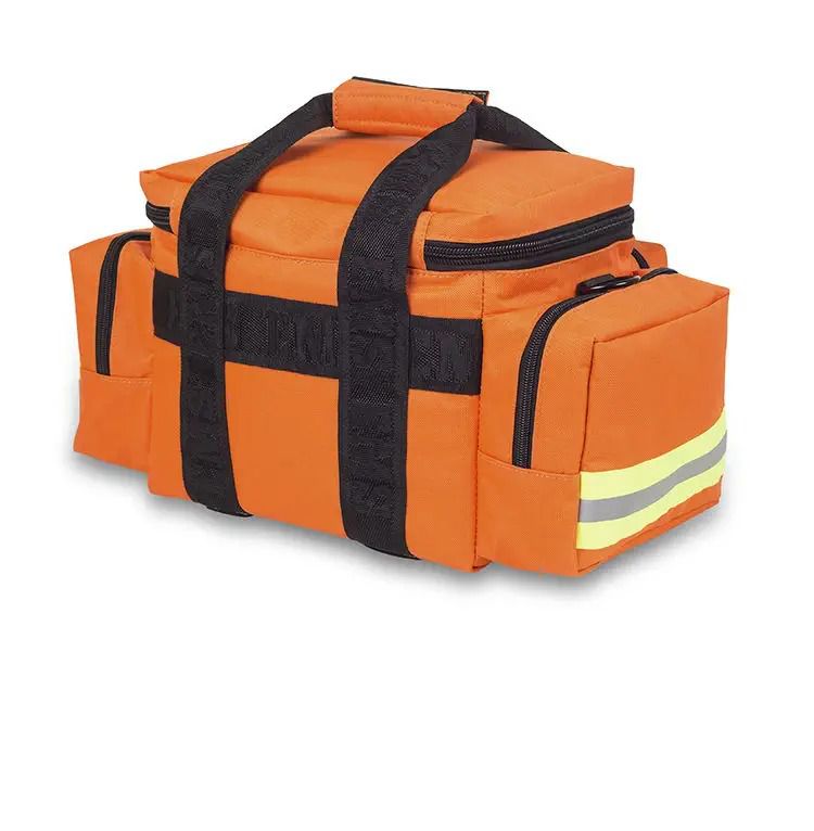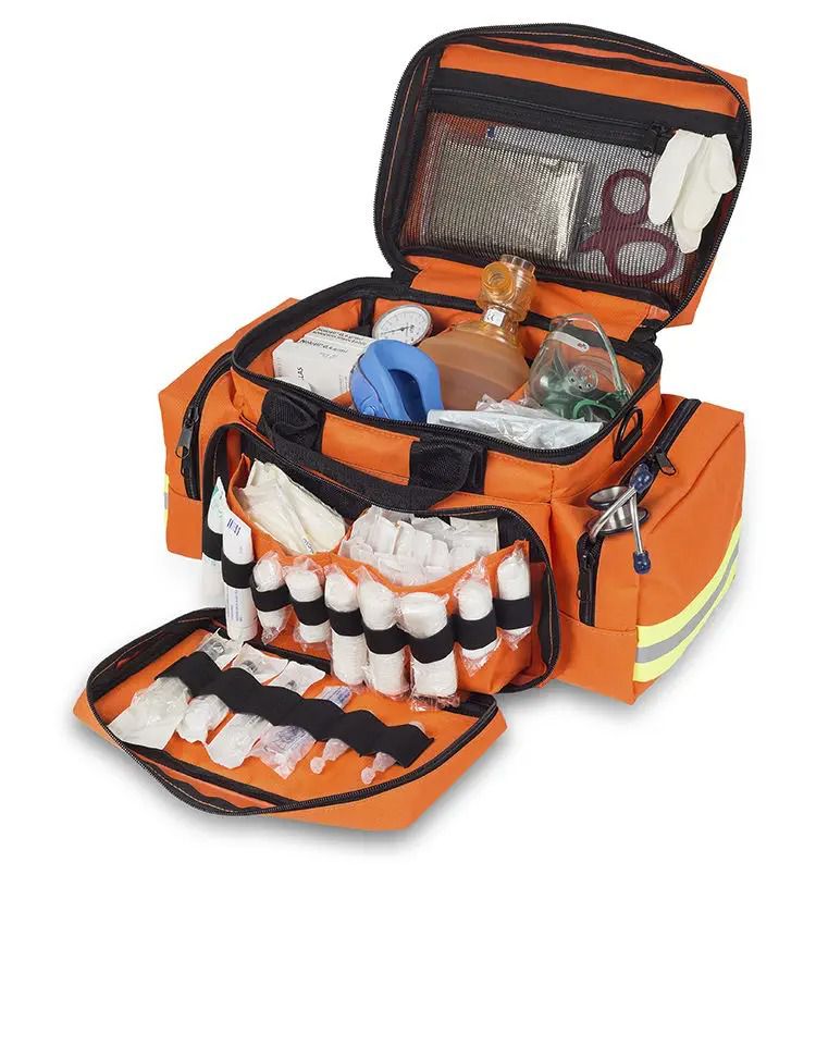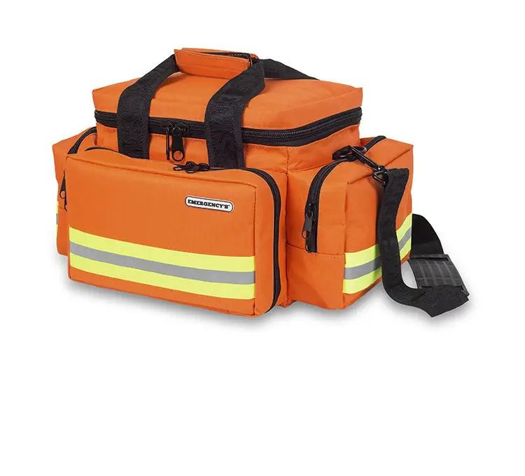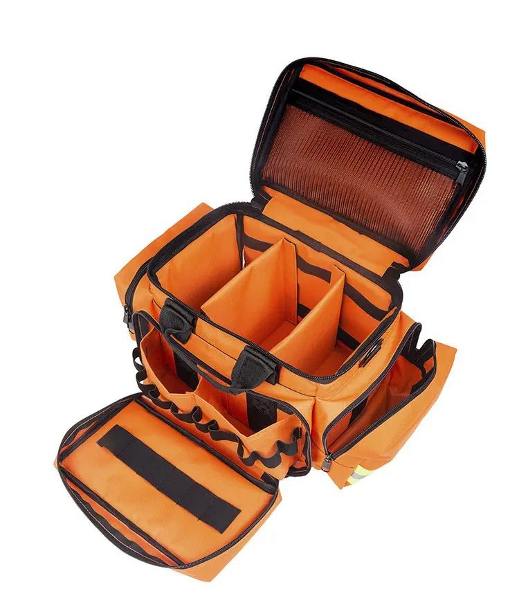 Практичная и легкая аварийная сумка EM13.025 оранжевая с двумя регулируемыми внутренними перегородками и карманом на стеллаже в заслонке для облегчения организации санитарного материала.