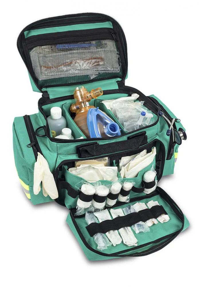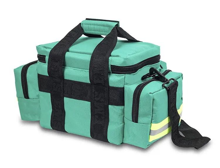 Практичная и легкая аварийная сумка EM13.036 зеленая с двумя регулируемыми внутренними перегородками и карманом на стеллаже в заслонке для облегчения организации санитарного материала.