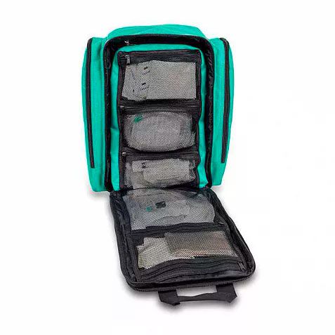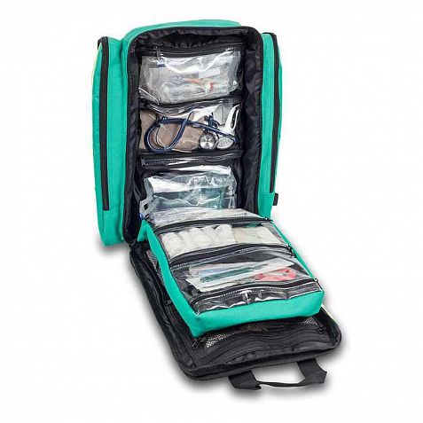 Он также имеет два боковых кармана большой вместимости, разработанных для хранения диагностического материала, а также два внешних передних кармана: (верхний) предназначен для размещения материалов для самозащиты, а (нижний) подходит для размещения дефибриллятора любого типа, плюс нижний карман с водонепроницаемой частью для защиты от сильных осадков.