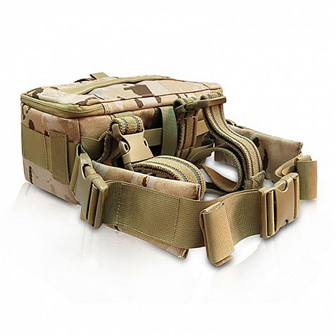 Благодаря эксклюзивной конструкции и возможности быстрого доступа к камере сумки, можно оказывать помощь раненым на поле боя, имея под рукой все необходимые инструменты, как в операционной. На задней части имеются ремни MOLLE, что позволяет легко закрепить его на любом другом предмете, который может носить боец (рюкзак, пояс, жилет, куртка и т.д.).