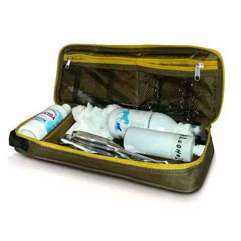 Вместительная сумка для ветеринарных врачей. Позволяет укомплектовать оборудование и медикаменты для помощи мелким и крупным животным. Включает дополнительную съемную «дежурную» сумку.