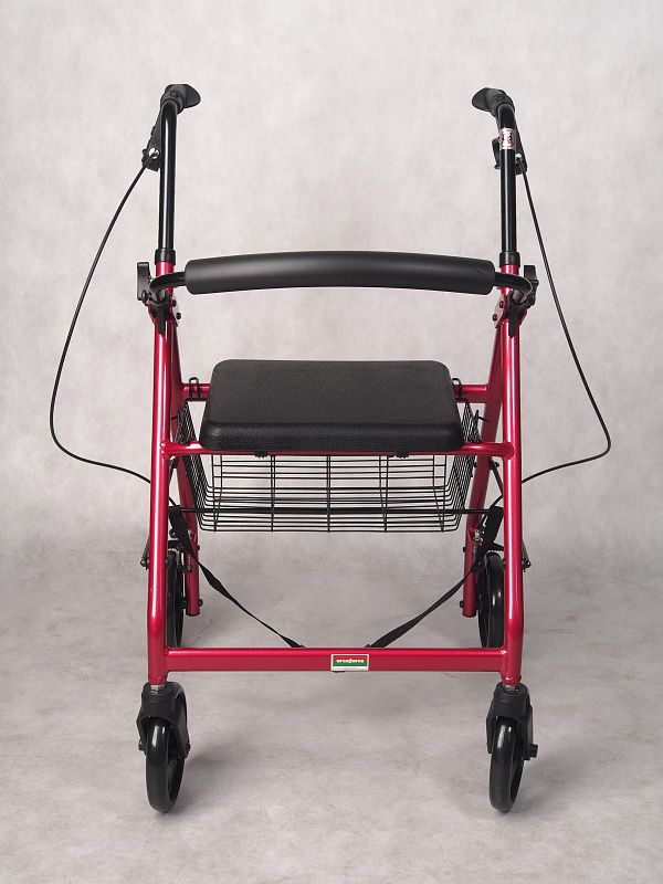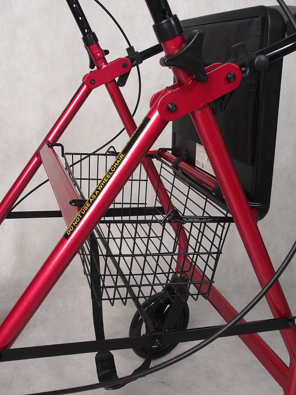 Конструкция выполнена из высокопрочного алюминиевого сплава. Складывается и раскладывается без инструмента. Ходунки оснащены мягким сиденьем из искусственной кожи, полукруглой мягкой спинкой, корзиной. Сидение не регулируется по высоте.