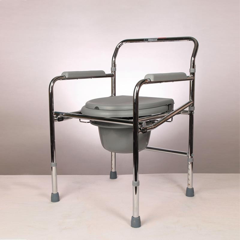 Стул выполнен из стали, опорные части изготовлены из пластика. Данное кресло-туалет значительно упрощает уход и самообслуживание пациента. Складная конструкция изделия оснащена специальной съемной емкостью с крышкой для использования по назначению. Также кресло снабжено специальным стульчаком с крышкой, при поднятии которой пациент может опираться на нее спиной.