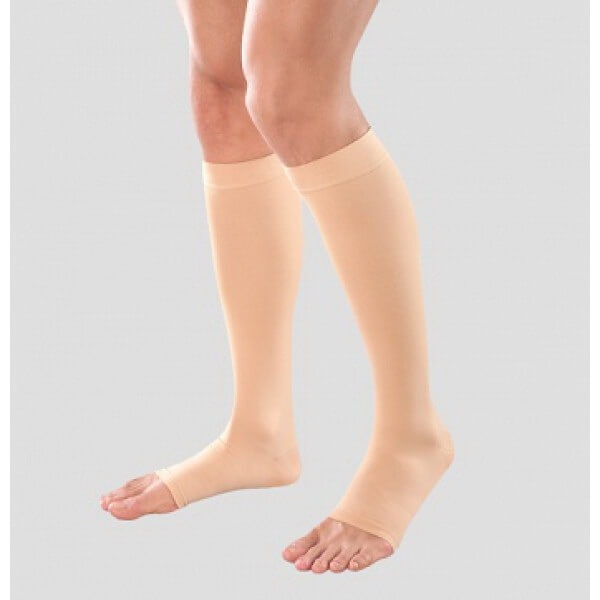 Использование компрессионного трикотажа - общепризнанный метод профилактики и лечения болезней вен нижних конечностей. В области щиколотки и голеностопного сустава компрессия составляет 100%, ниже коленного сустава компрессия уже 70% от начального значения. Постепенное снижение компрессии позволяет нормализовать отток жидкости из нижних отделов ног, защищает венозную стенку от деформации и ускоряет ток крови, что упрощает и нормализует работу венозной помпы.