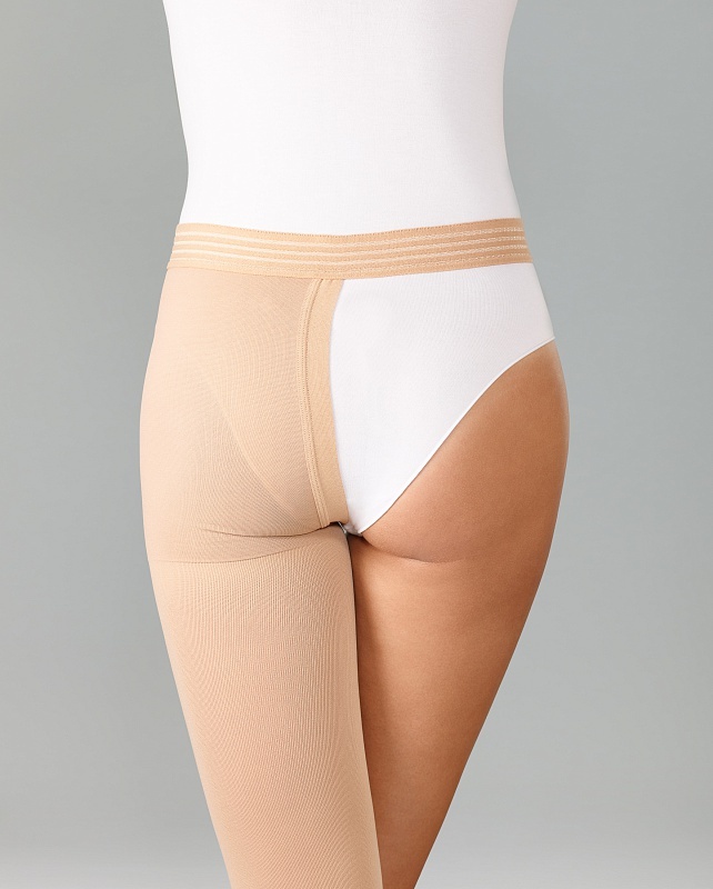 Материал обеспечивает градуированную компрессию, убывающую по направлению от голеностопа к верхней части конечности. Эластичный пояс фиксирует изделие на талии. Все изделия изготовлены с использованием многоволоконной нити, придающей особую эластичность и мягкость, которая обеспечивает «дышащий» эффект и идеальную посадку.