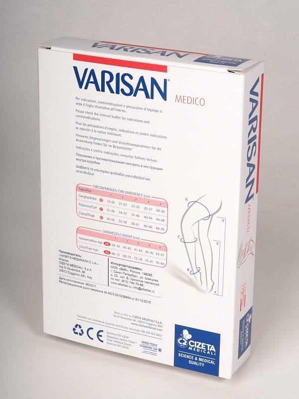 Материал обеспечивает градуированную компрессию, убывающую по направлению от голеностопа к верхней части конечности. Эластичный пояс фиксирует изделие на талии. Все изделия изготовлены с использованием многоволоконной нити, придающей особую эластичность и мягкость, которая обеспечивает «дышащий» эффект и идеальную посадку.