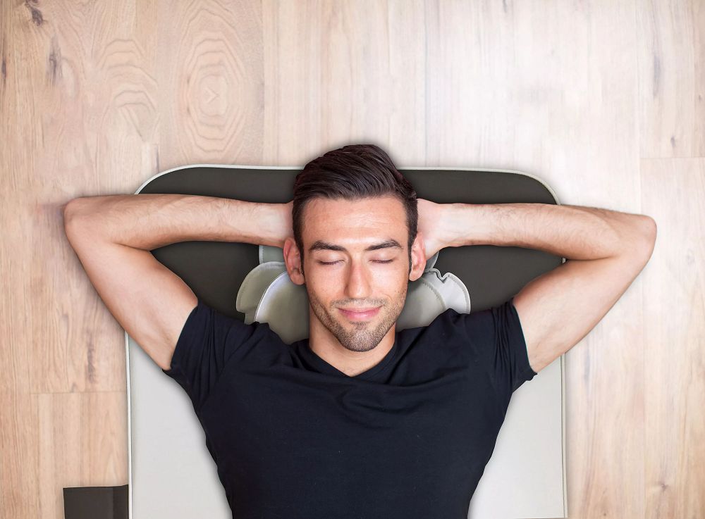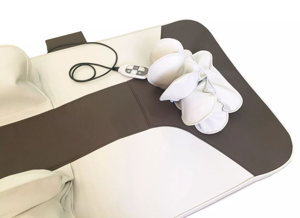 Массажный мат отличается от других массажных аппаратов тем, что массаж осуществляется в горизонтальном положении, лежа на спине. В этом его уникальность. Расположитесь удобно, выберите нужную программу и подходящую интенсивность. Важно, чтобы вы чувствовали себя комфортно! В начале использования мы рекомендуем устанавливать низкую интенсивность. Воздушные подушки функционируют попарно и обеспечивают улучшение состояния каждого отдела позвоночного столба (грудного, поясничного, плечевого).