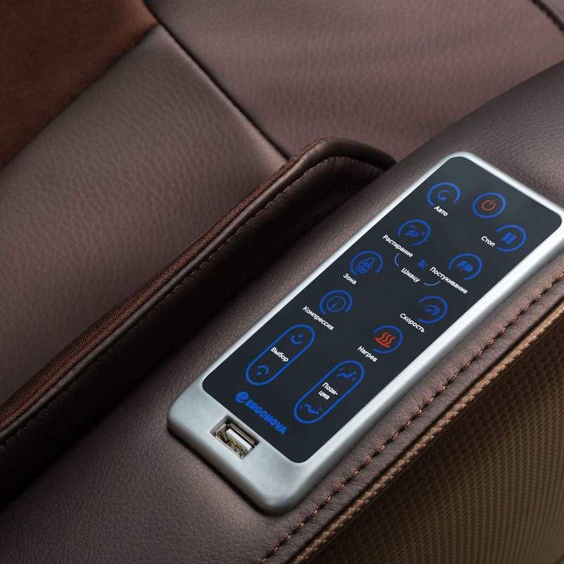Легко доступный встроенный пульт дистанционного управления. Встроенный USB-порт для зарядки телефона или планшета во время массажа. Возможность слушать свою любимую музыку через Bluetooth во время массажа. Ручная настройка и выбор автоматических программ.