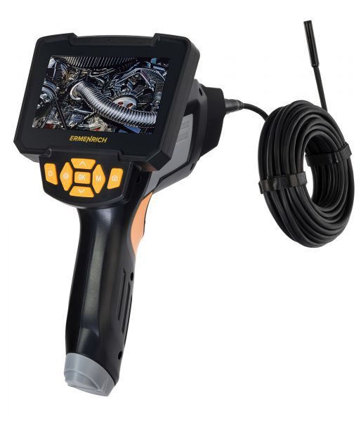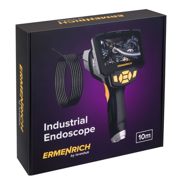 Эндоскоп Ermenrich Seek VE50 с одной камерой прямого обзора и полужестким кабелем длиной 10 м. Диаметр камеры всего 5,5 мм, и она легко проходит в труднодоступные места. Угол обзора составляет 70°, благодаря подсветке 6 светодиодами изображение получается четким. Эндоскоп рекомендуется использовать для диагностики канализационных и вентиляционных труб, осмотра стен на наличие трещин, выявления неисправностей в промышленном оборудовании. Степень герметичности камеры IP67, поэтому можно осматривать объекты под водой, например, при аварийном ремонте канализации или водопровода.