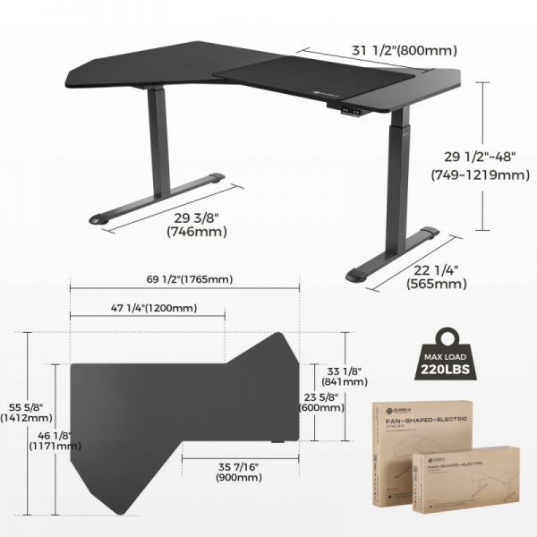 Стол компьютерный с электроприводом Eureka ERK-EDI-FS-MSW (Fan shaped), чёрный