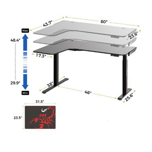 Стол для геймеров Eureka L60 Gaming Desk c электрической регулировкой по высоте - идеальный выбор тех, у кого много игровых девайсов. L60 имеет 60-дюймовую столешницу с гладким покрытием в стиле карбон. На столе для геймеров Eureka L60 можно с лёгкостью разместить несколько мониторов, игровую консоль, клавиатуру и много другого оборудования.