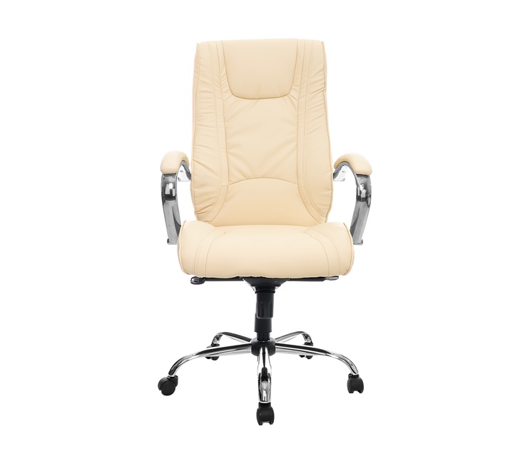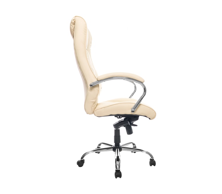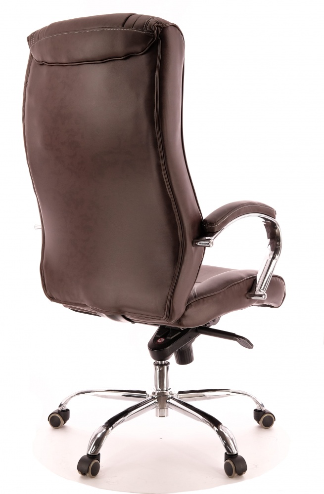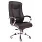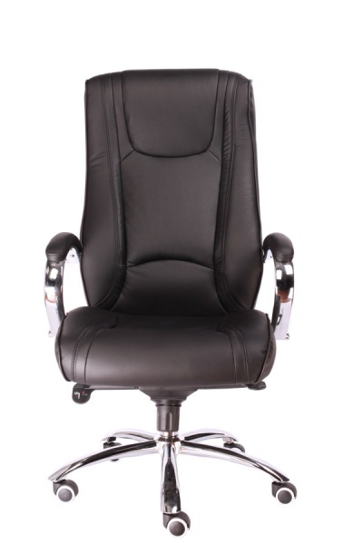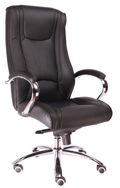 Современное кресло для руководителя, с хромированным каркасом и механизмом качания повышенной комфортности.