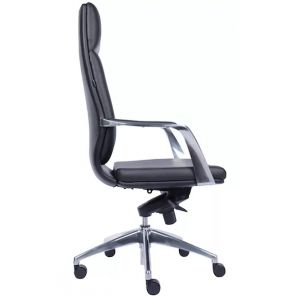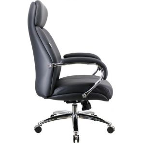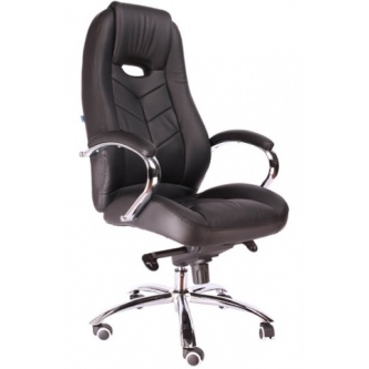 Стильное офисное кресло, рассчитанное, в первую очередь, на руководителей. Обтянуто натуральной кожей, имеет подлокотники и крестовину из хромированной стали. Очень крепкое и надежное, выдерживает до 120 килограмм. Ортопедическое: спинка с фигурным изгибом, поясничным валиком и подголовником поддерживают спину в физиологически верном положении, что снижает усталость, риск возникновения болей и заболеваний позвоночника. Кресло можно регулировать по высоте, оно оборудовано механизмом качания. Подлокотники статичные, что может показаться не очень удобным. Наклон спинки тут также не регулируется.