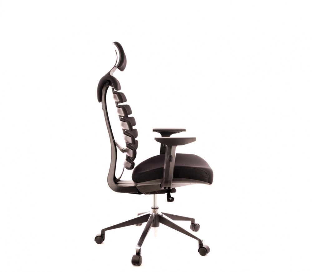 Everprof Ergo Black – эргономичное офисное кресло с большим количеством индивидуальных настроек. Среди преимуществ модели можно выделить спинку с особой формой для оптимальной поддержки позвоночника. Пользователь может отрегулировать глубину посадки, высоту сиденья и подлокотников. Подголовник есть, но он имеет только одно стационарное положение. Асинхронный механизм обеспечивает качание сиденья и спинки с разной амплитудой.