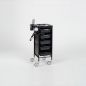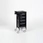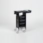 Парикмахерская тележка QA0009 имеет пять вместительных ящиков, любой из которых можно закрепить на боковой панели столешницы, тем самым увеличив рабочую площадь.